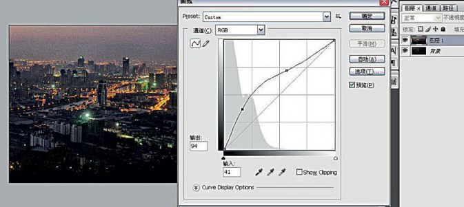 2、接下来我们对画面的整体色调进行调整。原作品的曝光不足,没有我们想要的灯火通明的效果,因此我们要对曝光进行调整。调整的方法有很多,我们这里使用曲线工具进行调整。