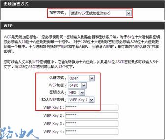 WEP加密有两种选择,一种是64Bit,一种是128Bit。