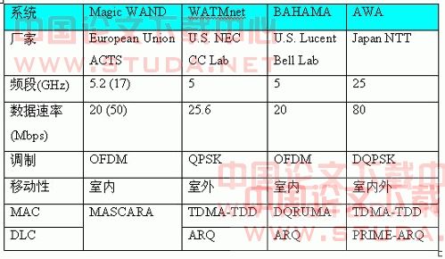 表3 无线ATM系统比较