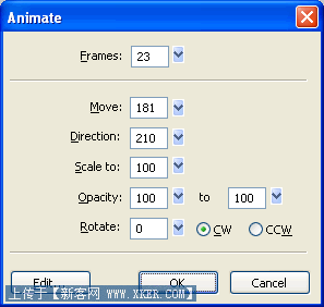 5.然后选中所有图形,修改—元件—转换为元件(类型选择动画),参数如下图所示: