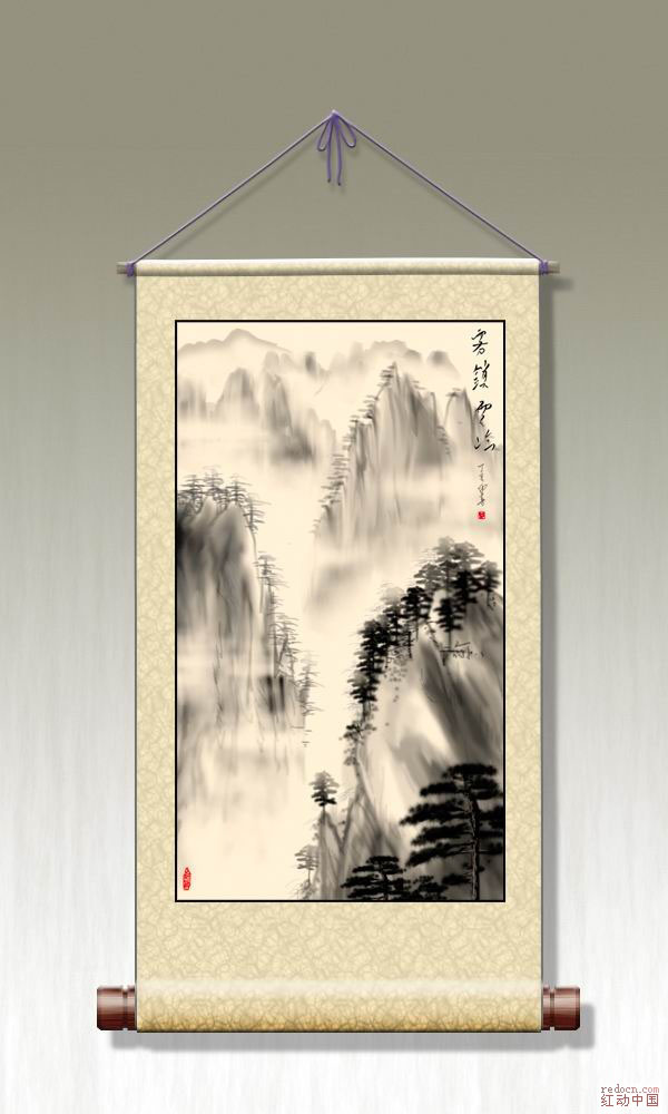 本教程的过程介绍有点简单,鼠绘的时候可能会复杂很多。山峰、树木、云雾等都需要先自己设置好笔刷后再慢慢绘制。 最终效果 |