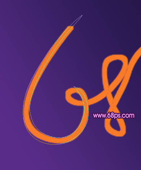 选择钢笔工具,沿着文字的笔画勾出下图所示的第一段闭合路径,路径特点就是两端尖,中间厚。