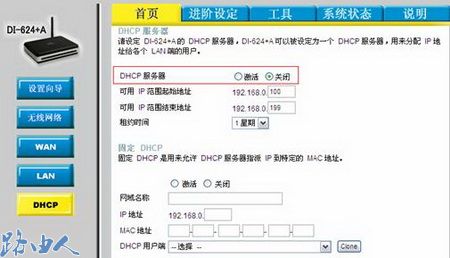 至此,DI-624+A就作为一台无线交换机使用,所有的用户都从此友讯有线路由器上获取IP信息了。