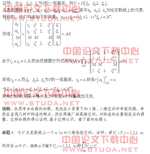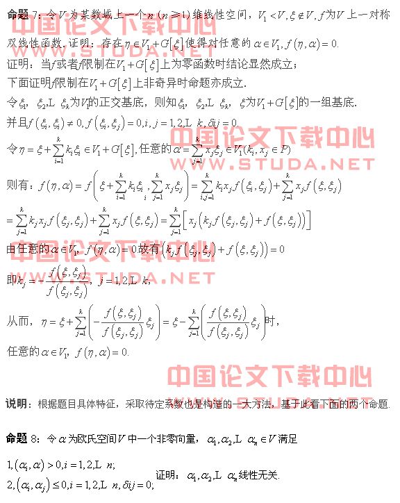 在高等代数的学习过程中,我们常常会遇到一些存在性或者潜在的存在性的定理或者命题的证明,而这类问题的证明往往是很困难的.我们需要考察一个辅助命题,通过这个辅助命题打通原命题的关节,这种证明的方法即是构造法.由于运用构造法时需要引进一个适当的辅助命题,而这个命题并不是那么容易就能够引进的,因此上,构造法要比一般的证明方法困难得多,但它在高等代数中却有着广泛的应用,特别是在证明一些难题时更具价值.本文试图通过几个命题讨论一下构造的原则与构造法的应用.
