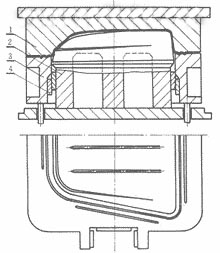为降低产品成本,获得较好的表面质量,采用锌基合金模具拉深,模具结构如图2所示。但是锌基合金材料较软,仅表面有一层较硬层(硬度为 HB100~115),故模具寿命较低。据该厂情况看,拉深不复杂的冲件,坯料为08钢、料厚为1.0mm,凹模圆角半径Rd=5mm,其模具寿命仅 600件。如何提高锌基合金拉深模的寿命,在拉深件设计时应采取什么具体措施,是本课题研究的内容之一。
